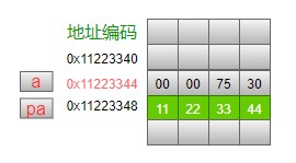 - int pa; 这个语句中的表示定义的变量pa是一个指针,前面的int表示pa这个指针指向的是一个int类型的变量。不过此时我们没有给pa进行赋值,也就是说此刻pa对应的存储单元中的4个字节里的值是没有初始化的,可能是0x00000000,也可能是其他任意的数字,不确定;