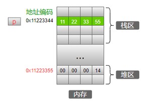 在堆区申请了4个字节的空间,然后强制类型转换为int*型之后,赋值给指针变量p,然后通过*p设置这个地址中的值为14,这是合法的。如果在释放了p指针指向的空间之后,再使用*p来操作这段地址,那就是非常危险了,因为这个地址空间可能已经被操作系统分配给其他代码使用,如果对这个地址里的数据强行操作,程序立刻崩溃的话,将会是我们最大的幸运!