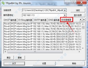 tftpd64是一款应用在小型网络中的TFTP网络服务器包,可以用于临时开启FTP进行文件的共享或者路由器的升级等,一般在路由器升级的时候会使用到这个工具。软件包括一个SNTP ,SYSLOG ,DHCP和DND服务器,以及一个TFTP服务器端和客户端。它能够支持多种服务器下的文件同步传输操作,同时提供TFTP客户端应用,支持tsize,blocksize和timeout等实用性服务,另外,该款工具操作简单,在快速连接网络的过程中稳定自如,支持简单的操作便可以实现远程文件传输的功能。而