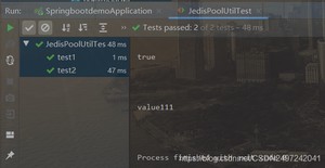 运行结果:获取JedisPool的对象是单例模式的,然后从JedisPool连接池里面取出jedis对象进行缓存存取操作