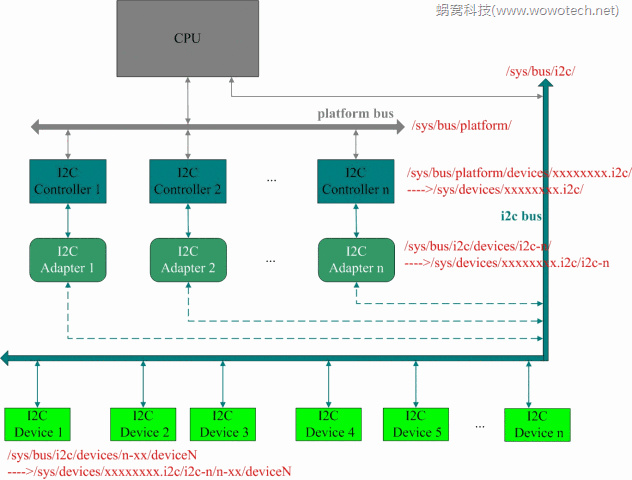 - 负责驱动芯片内的 I2C 控制器。每个 I2C 控制器驱动程序被称为 adapter,这些驱动程序负责执行 I2C 总线的实际传输任务。