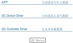 - I2C 控制器驱动:控制器驱动解析命令,并生成符合 I2C 协议的信号传输给从设备。