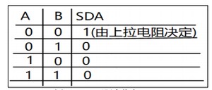上图就是SDA什么时候为0,什么时候为1的真是表,A和B就是三极管各自的控制引脚