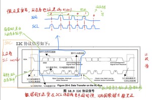 这里讲的是以传输addr找到I2C设备为例子画的,而找到后,I2C控制器(主设备)拉低SCL上的电平超过一定时间,就可以开始传输数据了。