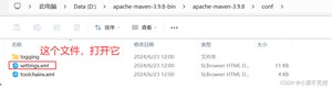 2.在 D:apache-maven-3.9.8-binapache-maven-3.9.8 下找到conf文件夹,打开,找到settings.xml文件: