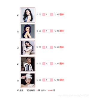 js添加删除购物车结算代码