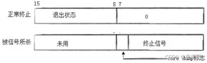 - 正常退出:如果子进程正常退出(即调用了函数),那么的低16位的高8位将保存子进程的返回值(范围是0-255)。低8位中的低7位将被设置为0,而最高位(第8位)通常被用来表示一个标志位,以区分是正常退出还是由于信号而退出。