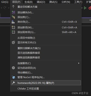 在VS的界面中,最顶端找到项目这一栏,点击属性