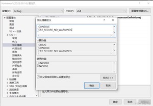 在最上方的白框中输入_CRT_SECURE_NO_WARNINGS,点击确定,然后点击应用(切记是应用而非确定),但这种办法依旧不能一劳永逸(恼)。