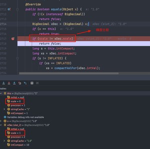 这是因为 方法不仅仅会比较值的大小(value)还会比较精度(scale),而 方法比较的时候会忽略精度。