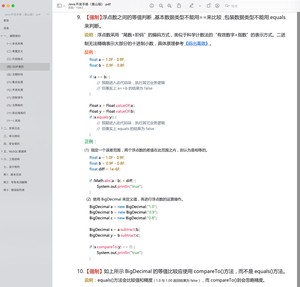 《阿里巴巴 Java 开发手册》中提到:浮点数之间的等值判断,基本数据类型不能用 == 来比较,包装数据类型不能用 equals 来判断。