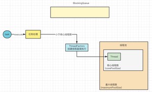 如果线程池里的线程数不再小于核心线程数呢?那么此时就会尝试将任务放入阻塞队列中,入队成功之后,如图