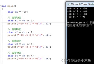 printf("-10 << 4 = %d ", r4); // 96 (数学公式不好用了)