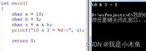 printf("10 >> 3 = %d ", r3); // 1 (10/2的3次方)
