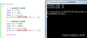 这里我们用char类型,因为它范围是1个字节,8bit位,方便查看结果。