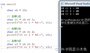 printf("10 << 3 = %d ", r3); // 80 (10*2的3次方)