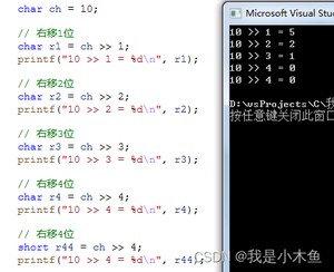 printf("10 >> 1 = %d ", r1); // 5 (10/2的1次方)