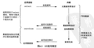 相对于同步阻塞IO模型,借由操作系统提供的select/poll功能使用少量线程管理大量连接,用户进程通过select/poll获取当前实际ready的socket,然后在进程中阻塞的将内核态拷贝到用户态。在Linux系统中,有更高效的epoll实现。实际使用中,socket常会被设置成以non-blocking方式访问。
