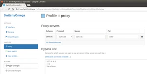虽然您可以从命令行为 Google Chrome 和 Chromium 浏览器配置代理,但我建议安装 Proxy SwitchyOmega 扩展来管理代理。
