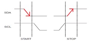 在IIC中规定,当SCL为高电平,且SDA从高到低的跳变时,视为数据开始传输;
