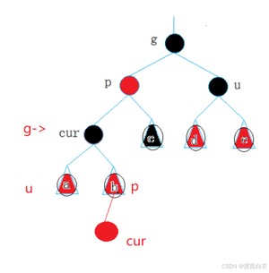 对于红黑树来说,当父亲节点时爷爷节点的左节点时,cur节点是父亲节点的右节点,就可以进行左右双旋操作。或者当父亲节点时爷爷节点的右节点,cur是父亲节点的左节点,就对爷爷节点进行右左双旋操作来保持红黑树的性质。
