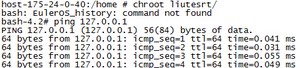 在pts/0端切换到新的根目录,执行ping 127.0.0.1操作,该操作属于新根目录下进行的