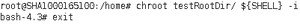 - 创建一个目录作为根目录,chroot MyRootDir默认会执行${SHELL} -i,即MyRootDir/bin/bash,所以需要拷贝bash到指定目录