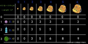 然后咱们的每个表格都要填写该表格所在列的背包容量最多可以在所在行的物品及以上所获得的价值总和最多能有多少