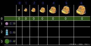 接下来看第零列,很明显,由于背包大小为0,装不了任何东西,所以都填0.