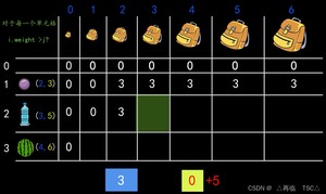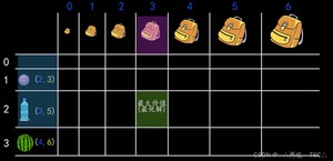 接着看二行的第五列,这一列背包容量达到了5,可以同时容纳葡萄和矿泉水, 所以这一格填8.
