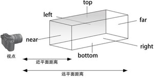 - 设置一个长宽高一定的投影矩阵,通俗点讲就是设置摄影机所能照射的范围。