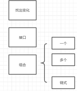 说明:如果前面的设计思想和设计原则都忘记了,就要找出变化,区分出不变的和变化的,把变化的部分独立出接口,或者使用组合