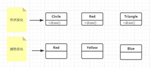 任其在这两个维度各自变化,为这两个维度搭个桥,让他们可以融合在一起:桥接模式