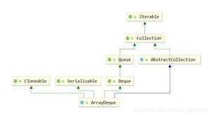 可见ArrayDeque是Deque接口的实现,和LinkedList不同的是,LinkedList既是List接口也是Deque接口的实现。