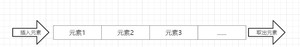 正如数据结构中描述,queue是一种先进先出的数据结构,也就是first in first out。可以将queue看作一个只可以从某一段放元素进去的一个容器,取元素只能从另一端取,整个机制如下图所示,不过需要注意的是,队列并没有规定是从哪一端插入,从哪一段取出。