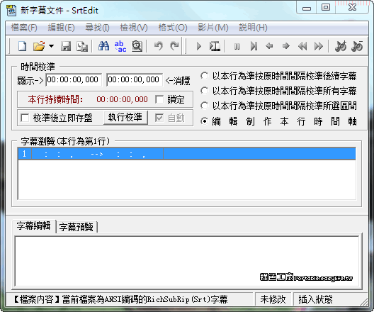 編寫、編輯、校準、合併或分割、轉換、規範Srt(SubRip)及Ssa(Sub Station Alpha)格式字幕文件; 合成或分離雙語字幕;編輯特效字幕等。支持GB簡體、Big5繁體、Unicode簡體與繁體字幕的相互轉換。程序為Unicode版本,不用安裝即可直接在各種語言Windows2000或XP中運行。