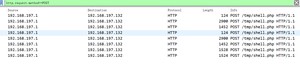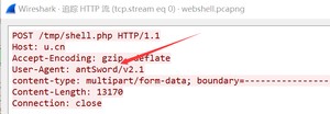 1、菜刀都是http协议,发的包都是POST包,所以在显示过滤器下命令:http.request.method==POST