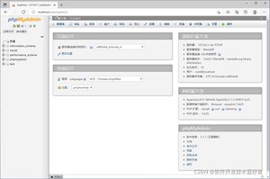 点击上图所示页面右上角的“phpMyAdmin”,可以进入数据库管理页面: