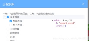 例如给员工角色设置权限,从下图来看只能访问员工管理、考勤、工资页,其他页面是不能看到的,包括按钮级别导出表格用户是可以使用的但是没有导入表格的权限功能,我们如何进行实现呢?