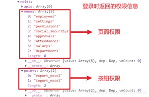 回头看一下刚才的图 在用户登录时会返回给我们一个权限数 里包含着页面权限,按钮权限,我们可以通过数据进行是否要显示数据,