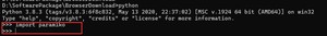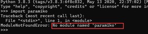 直至到此,我们的第三方库就已经安装完成,下面我们就在终端输入python,进入python命令行,输入“import paramiko”命令,发现和我们上面没安装之前不一样吧。