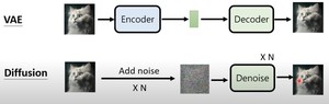 - DDPM中潜在噪声图(隐变量)的维度和图像本身相同,而VAE中潜在空间一般会降低维度