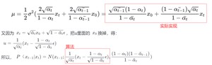 所以, $P(x_{t-1}|x_t) = N(x_{t-1};frac{1}{sqrt{alpha_t}}(x_t-frac{1-alpha_t}{sqrt{1-baralpha_t}}epsilon),frac{(1-alpha_t)(1-baralpha_{t-1})}{1-baralpha_t})$