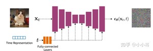 其中代码 将时间步t和噪声图x_noisy一起送入噪声预测模型中。时间步t嵌入到噪声预测模型中的方式: