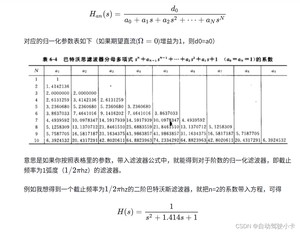 - 设计滤波器传递函数:利用巴特沃斯滤波器的传递函数公式,根据计算得到的参数,确定滤波器的传递函数。传递函数描述了输入信号与输出信号之间的关系,可以用于计算滤波器的频率响应和相位特性。