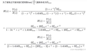 还是以我们的归一化二阶巴特沃斯低通滤波器公式:
