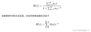 IIR实现的最终效果就是我们刚才设计的过程对应的通用转移函数结构如下: