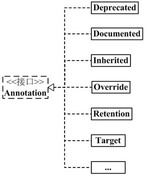 注意:它和我们通常的 implemented 实现接口的方法不同。Annotation 接口的实现细节都由编译器完成。通过 @interface 定义注解后,该注解不能继承其他的注解或接口。
