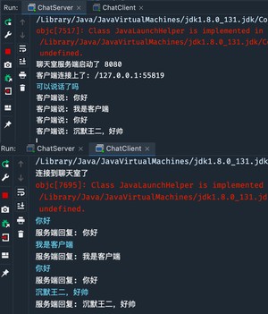 然后启动,就可以完成一个 Server 和多个 Client 交互了。