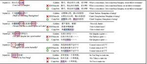 对话的过程也是一样,如果是普通的seq2seq模型,这里可能学不到,因为库洛洛这个词根本不在词库里面。所以用Pointer Network直接贴过来最好。